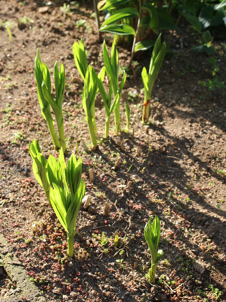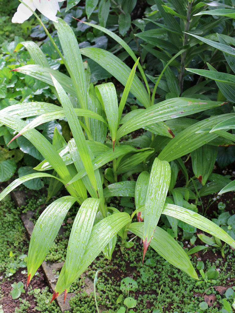 落葉性の多年草。シランの変種の白花の園芸品種。 シランに比べ花期は遅めで夏近くに咲く。