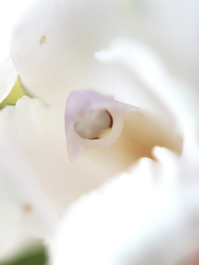 花被片は外花被3枚、内花被3枚の計6枚で、一番上の外花被は外萼片、下の2枚は側萼片と、 左右の内花被は側花弁、中央のひらひらした花弁は唇弁とも呼ばれる。