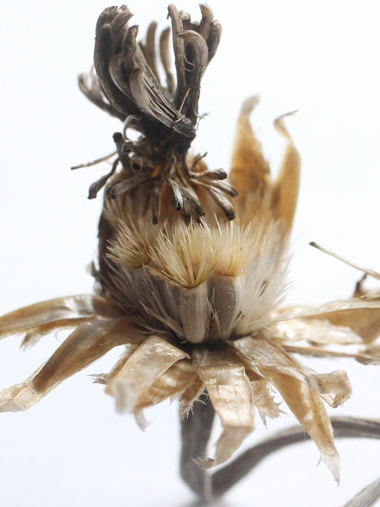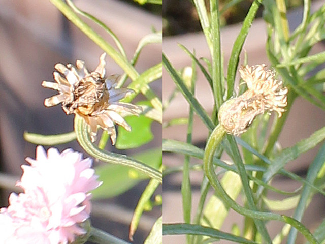 ヤグルマギクの開いている総苞片(左)と閉じている総苞片(右)の様子