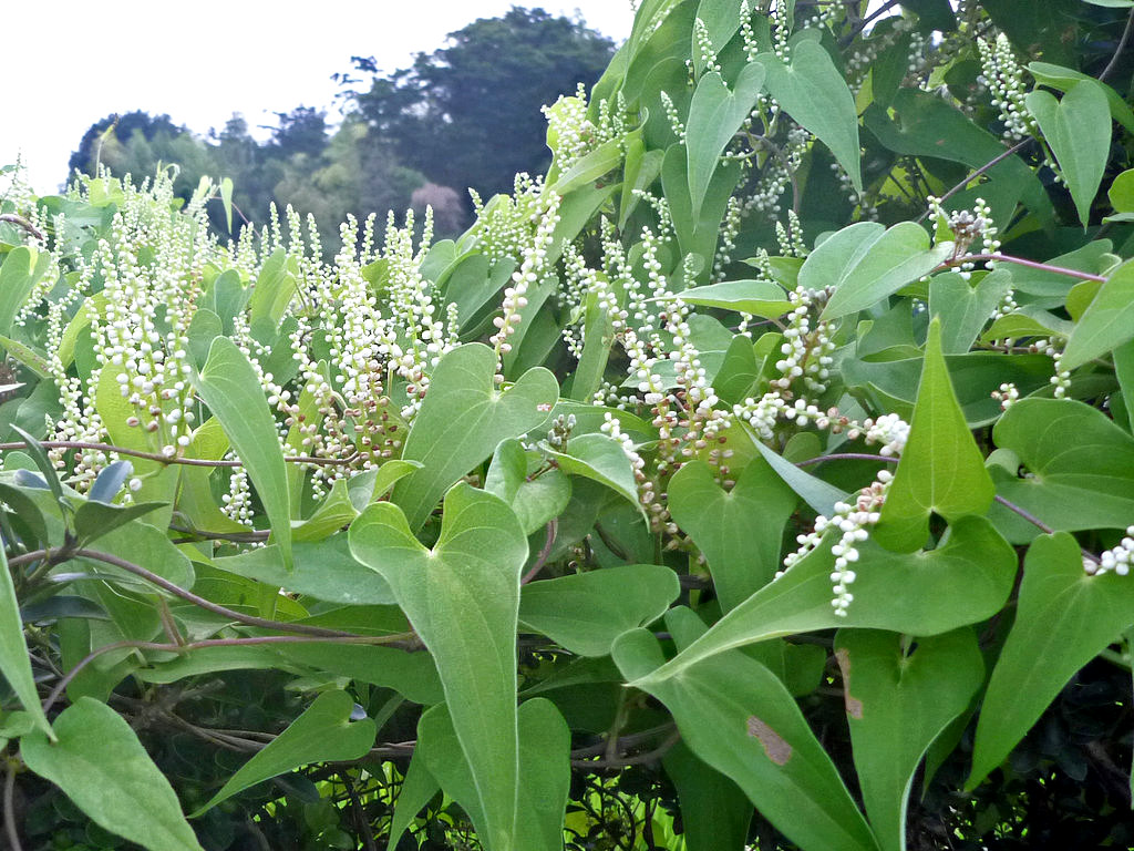 虫媒花の植物でヤマノイモを食べにくる小さな昆虫によって受粉する。