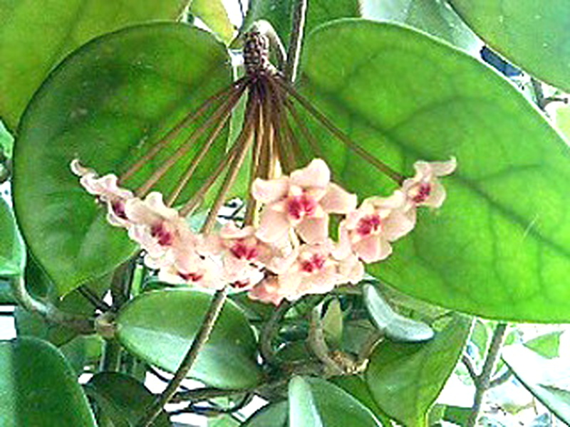 ホヤ・カルノーサ Hoya carnosa 読み:ホヤ・カルノーサ サクララン 分類 常緑多年草 科属 ガガイモ科 / ホヤ属 花期 7月から8月 花色 ピンク 白 用途 鉢植え 環境 非耐寒性 日なた~半日陰 (夏は日陰) 明るい室内 繁殖 種子まき さし木 とり木 つる性の常緑多年草で多肉植物。 花は砂糖菓子のような質感で下向きに咲く。 夏の直射日光は避け冬は日の当たる場所で育てる。 2008/04/30 ピンク色の花 夏に咲く花 3 4 5 6 7 8 9 10 11 12 1 2 花木、樹木 > 観葉植物 > 多肉植物、サボテン > 赤、ピンク > 夏(6-7-8) > ガガイモ科 > 2008/04/06 花のつぼみ 2008/04/30 花を下から見た様子