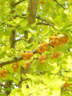 木に生っているのは種子で、イチョウは裸子植物のため子房は無く果実を作らない。 種子を作るのはイチョウの雌株だが受粉には雄株の花粉が必要となる。