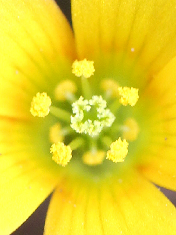 ウスアカカタバミはカタバミとアカカタバミの雑種と言われ、葉は薄い赤色で緑色の葉が混じることもあり、花の中心にはアカカタバミと同じ赤い輪がある。