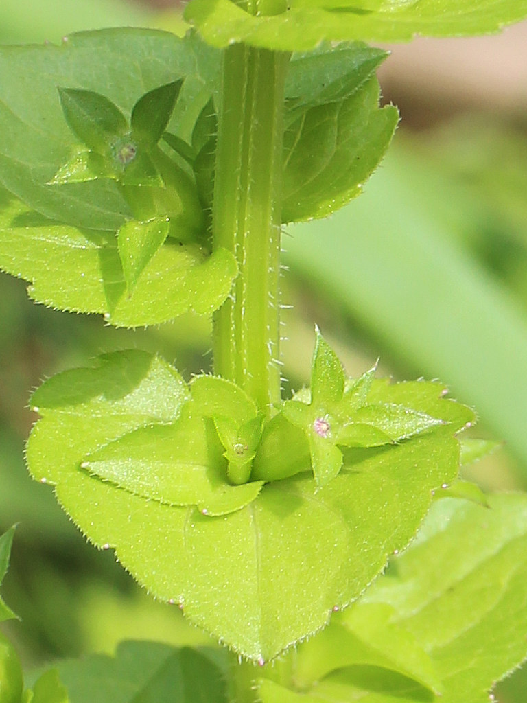 開放花は上の方で咲き、閉鎖花は中ほどから下の方で咲く。