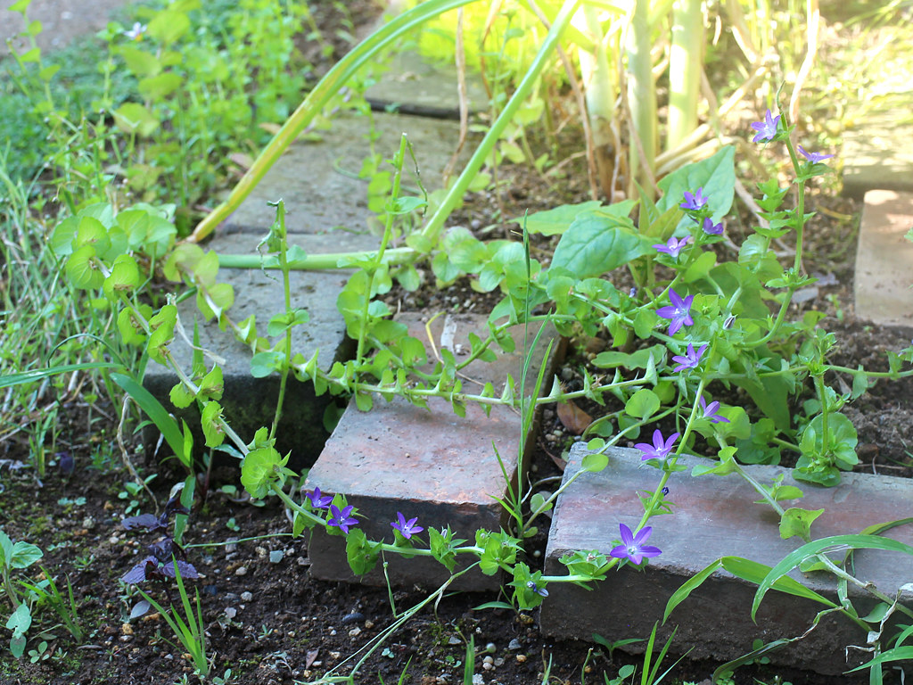 花は合弁花で花冠は5裂する。 春ごろには閉鎖花をつけ初夏ごろになると紫色の開放花が咲き始める。明るい場所や道端で見られ、花は下から順に咲く。