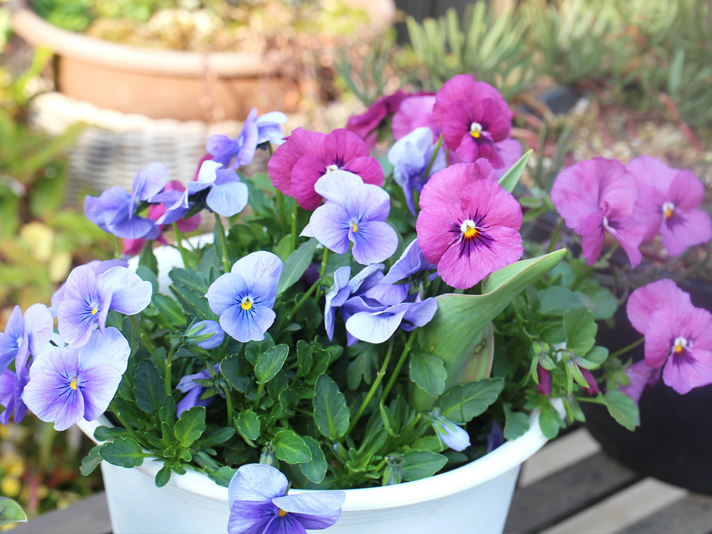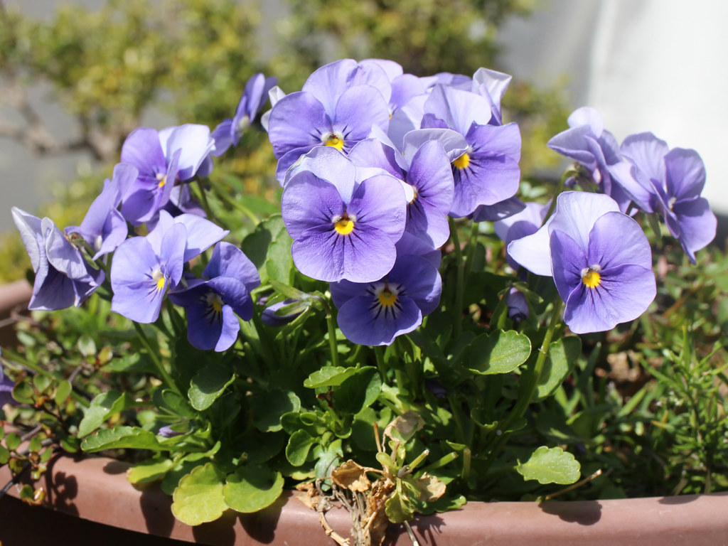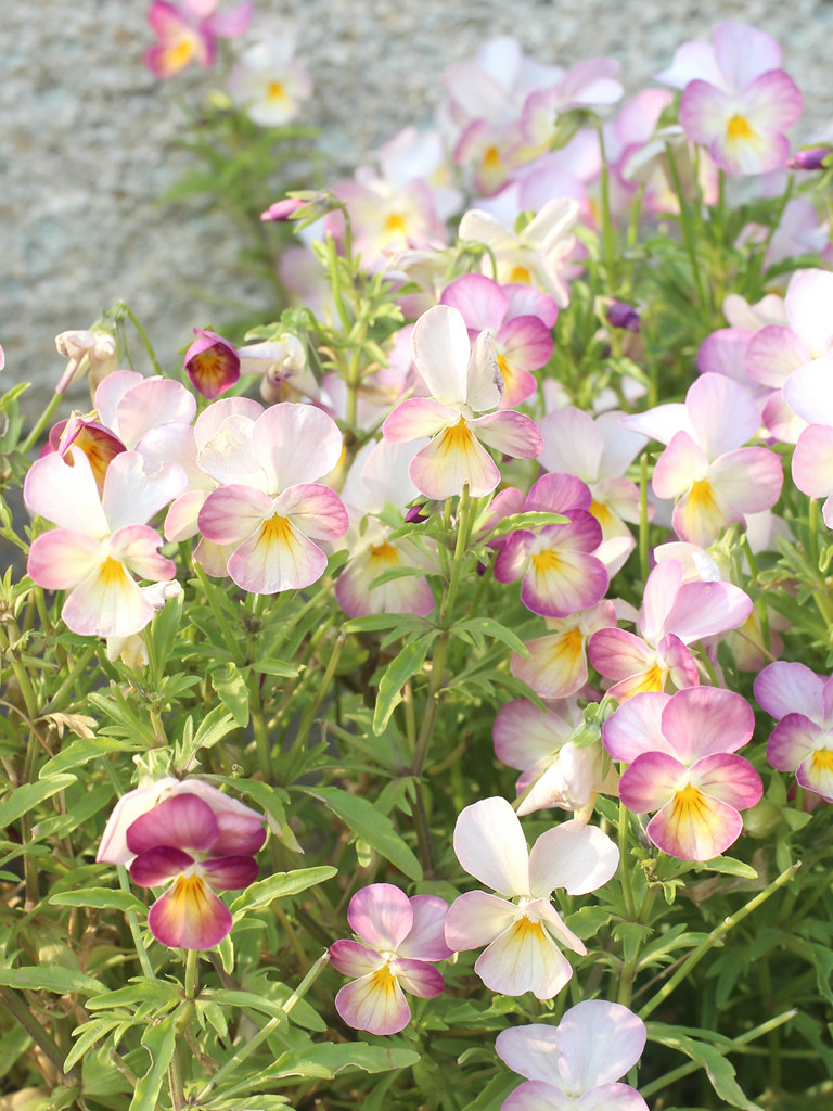 秋まきの1,2年草。主に花の大きさが5cm未満のものがビオラ、
