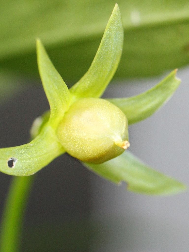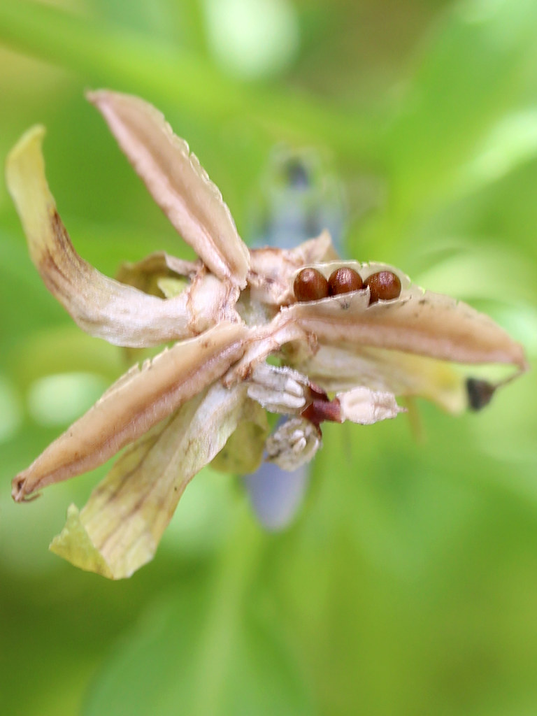 熟すと上部が3裂する。こぼれ種から開花しているものも見られる。