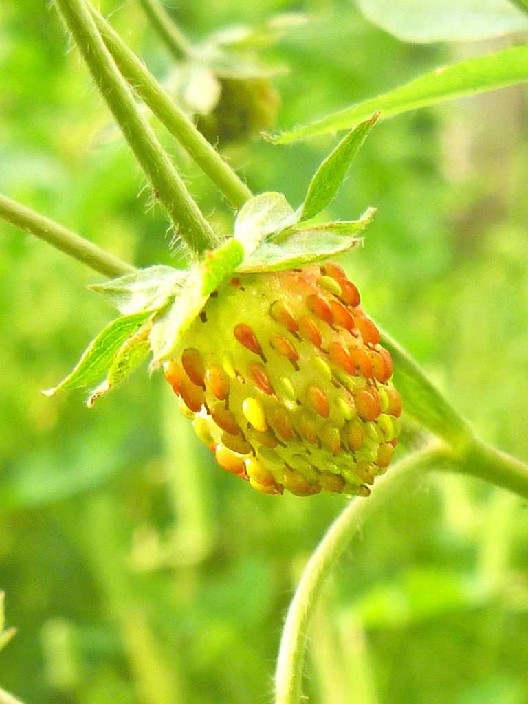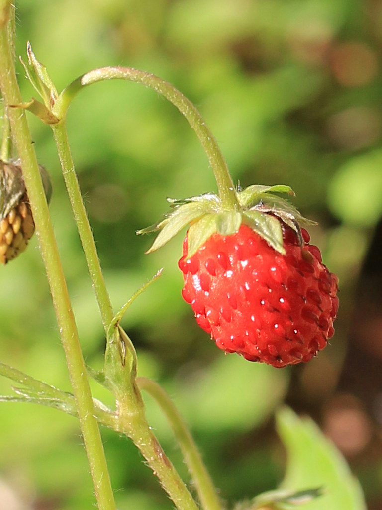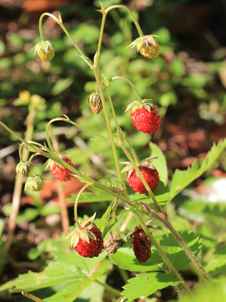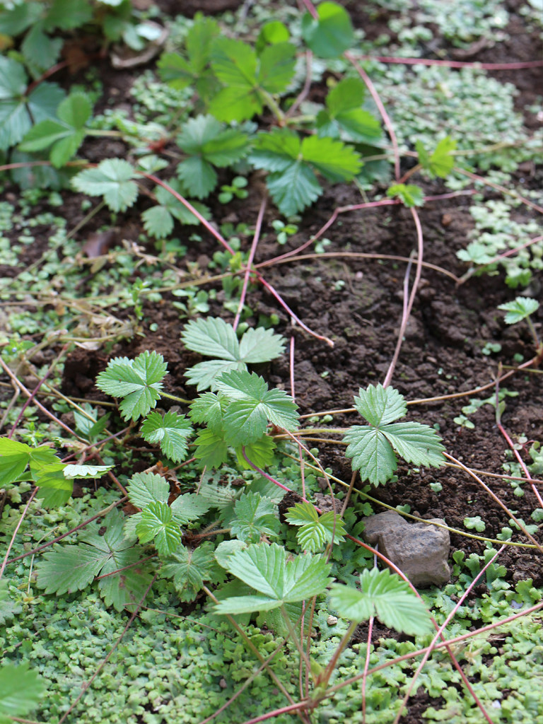 ワイルドストロベリー Fragaria vesca エゾヘビイチゴ 分類 常緑多年草 科属 バラ科 / オランダイチゴ属 花期 3月から6月 花色 白 用途 鉢植え 地植え 環境 耐寒性 日当たりの良い場所 繁殖 株分け ランナー 常緑性の多年草。 5月から6月頃には実が赤く熟す。 味は甘く酸味が強い。 2022/05/05 …(1-1) (春・半日陰・地植え) 白色の花 1024x768 花弁は5枚で分枝した茎先に複数の花をつける(1-3)、(1-8)。 春から夏に咲く花 3 4 5 6 7 8 9 10 11 12 1 2 ハーブ > 白 > 果実、種、根 > バラ科 > 2015/05/23 …(1-2) (春・半日陰・地植え) おしべとめしべ 800x600 おしべとめしべは多数本つき、この多数の子房が多数の果実となる(1-4)。 2015/05/23 …(1-3) (春・半日陰・地植え) 横から見た株の様子 1024x768 草丈は高さ30cmほど。花や実の無い時期や冬になると丈は低くなり葉は地面に近くなる(1-7)。 2014/05/06 …(2) (春・日なた・鉢植え) 花と萼の様子 1024x768 花の後ろに見られる緑色の萼片は果実になった後も残る(1-5)、(3)。 2015/05/23 …(1-4) (春・半日陰・地植え) 痩果の様子 1024x768 できる果実は痩果でこの粒の一つ一つが果実となっている。 果実は肥大した花托につき、花托も果実の一部となる(1-5)。 2022/06/04 …(1-5) (夏・半日陰・地植え) 熟した果実 1024x768 ワイルドストロベリーの実は多汁で甘みと酸味がある。イチゴの実の多肉質な部分は花托が肥大したもので、このように花托などが果実の一部になったものは偽果と呼ばれる。 2013/05/18 …(3) (春・半日陰・地植え) 萼を上から見た様子 萼は果実になった後も残り、果実についたものはヘタとも呼ばれる。内側に萼片と、外側に副萼片がつく。 2021/04/20 …(1-6) (春・半日陰・地植え) 葉の様子 1024x768 葉は3出複葉で小葉は卵形。縁にはギザギザした鋸歯がある。 2021/05/31 …(1-7) (春・半日陰・地植え) ランナーが伸びる様子 1024x768 ワイルドストロベリーは株から赤いランナーを伸ばし子株を作る。地面に触れると発根する。 2022/06/04 …(1-8) (夏・半日陰・地植え) 実が生る様子 1024x768 果実をつけた茎は立ち上がるか斜めになる。