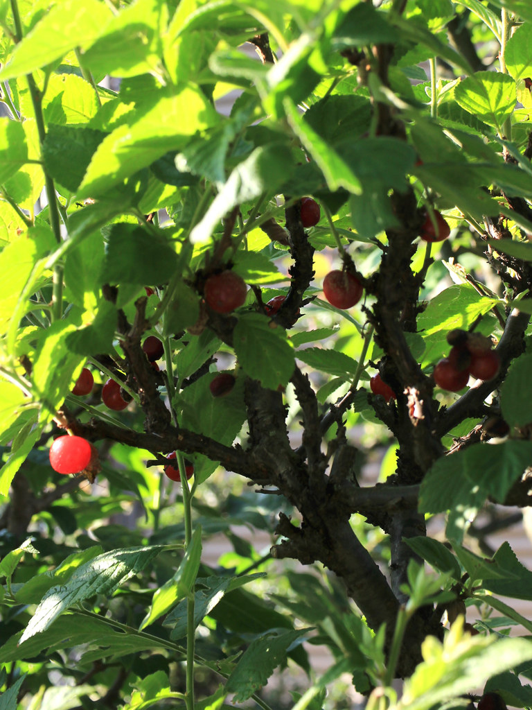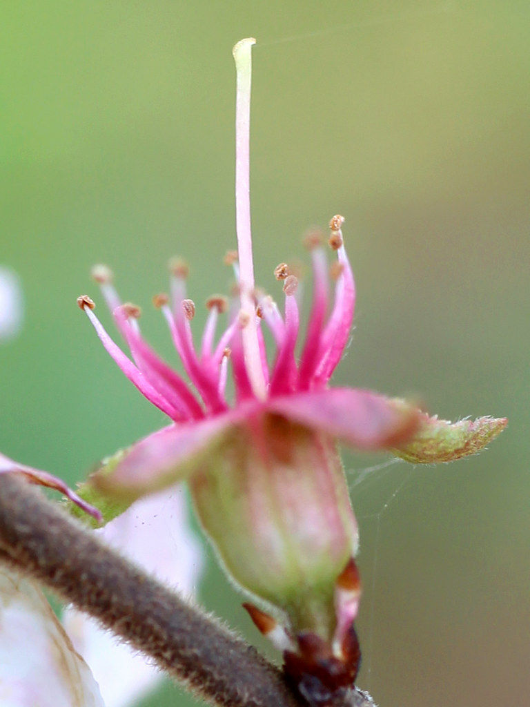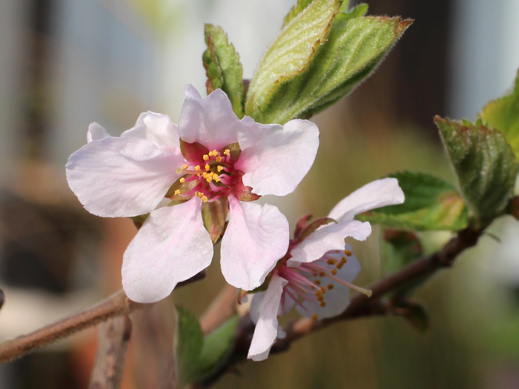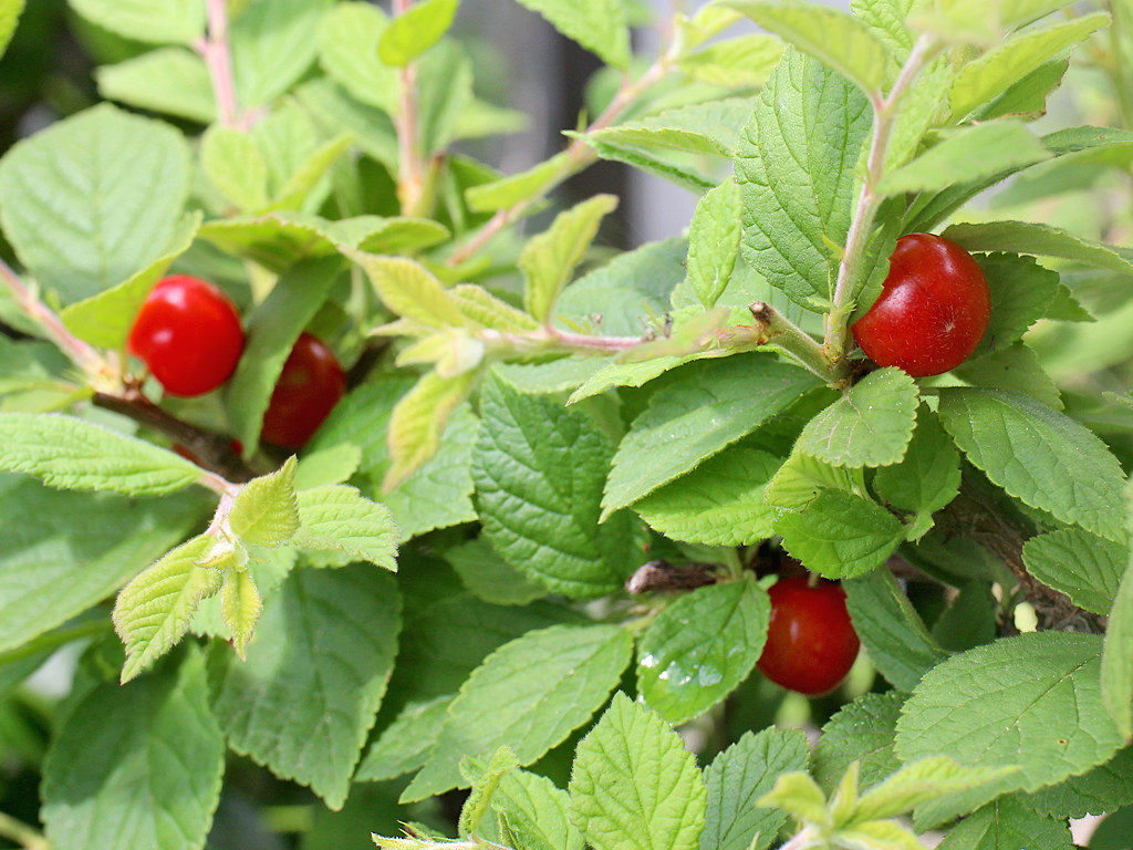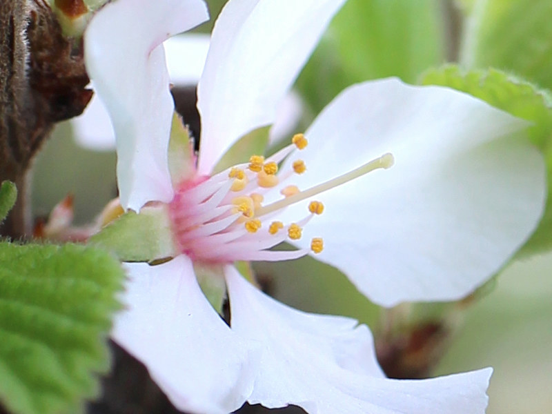 ユスラウメ (桜桃) Prunus tomentosa 読み:プルヌス・トメントサ 梅桃 山桜桃梅 (ユスラウメ) 分類 落葉多年草 科属 バラ科 / サクラ属 花期 3月から5月 花色 ピンク 白 用途 鉢植え 地植え 環境 耐寒性 日なた 冬季落葉性の低木。6月ごろ赤い実をつける。この実は甘みがあり食用となる。 2024/04/02 …(1-1) (春・地植え・日なた) 薄ピンク色の花 1024x768 花は花弁と萼片が5枚つく。 花弁の基部は細く花弁と花弁の間から緑色の萼が見える。 春に咲く花 3 4 5 6 7 8 9 10 11 12 1 2 2023/03/28 …(1-2) (春・地植え・日なた) 筒状の花托 (花弁が落ちた花) 1024x768 花托は筒状となりその先端に花弁と萼片がつく。 花の中を覗くと子房が見え、子房はこの筒に包まれている (子房周位)。 2023/03/28 …(1-3) (春・地植え・日なた) 花托につくおしべとめしべ 800x600 花托にはおしべが多数本と1心皮からなるめしべが1本つく。 2013/03/22 …(1-4) (春・地植え・日なた) 花のつぼみ 2014/04/13 …(1-5) (春・地植え・日なた) 花の枝の様子 1024x768 葉の展開と開花は同じくらいの時期に始まる(1-9)。 2025/06/04 …(1-6) (夏・地植え・日なた) 熟した果実 1024x768 できる果実は球形の液果で甘みがある。 果柄は短く枝の近くに実が生る(1-8)。 2014/06/12 …(1-7) (夏・地植え・日なた) 果実を半分に切ったところ 1024x768 実の中には硬い核があり(核果)、その中にある種子を保護している。 2025/06/04 …(1-8) (春・地植え・日なた) 実がなる様子 1024x768 果実は夏ごろに赤く熟す。 2015/04/01 …(1-9) (春・地植え・日なた) 咲き始めの様子 1024x768 咲き始めの頃は葉が展開する前にも咲く。 2014/04/13 …(1-10) (春・地植え・日なた) 全体の様子 1024x768 2022/06/04 …(1-11) (春・地植え・日なた) 夏の様子 1024x768