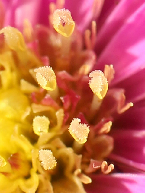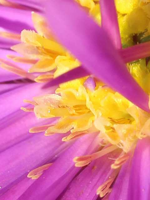舌状花には1本の雌しべがつく。同じく柱頭は2裂しY字に開く。