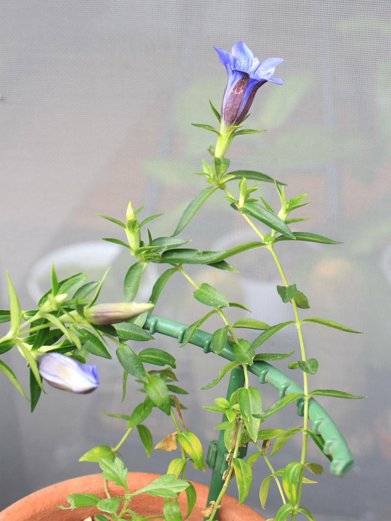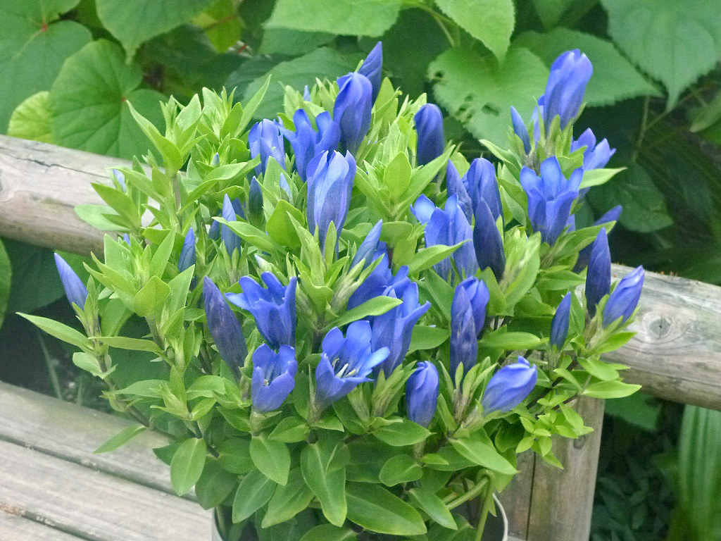 冬季落葉性の多年草。リンドウの名前は漢名「龍胆」の転訛で(りゅうたん)、 古くから薬に用いられた根が熊胆より苦いとして龍胆、日本でも竜胆と呼ばれる。 花は平開または半開し、星形に開くササリンドウ系やあまり開かないエゾリンドウ系などがある。