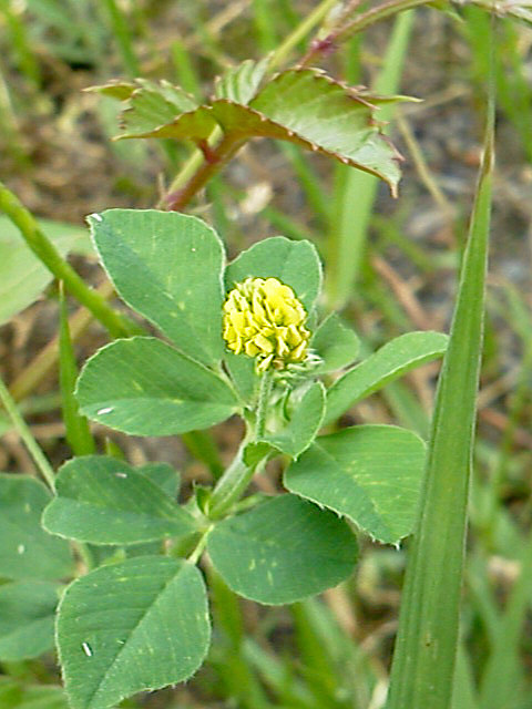 草丈は30cm~60cmほど。 葉は3出複葉で小葉は卵形。先は尖るかへこむ。