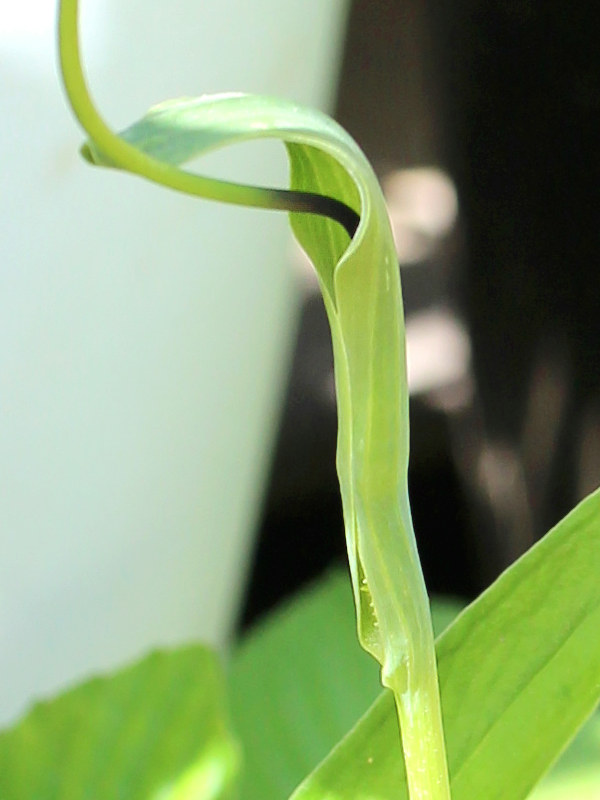 仏炎苞 spathe サトイモ科の植物にみられる、肉穂花序を包んでいる苞葉が大きく変化したものを仏炎苞という。花序を保護したり目立って虫を呼ぶ働きをしている。 花弁のように色鮮やかで仏炎苞の美しさを観賞するものも多い。 この苞を仏像の背後に見られる炎に見立て仏炎苞と呼ばれる。 図 茶色のもの 1024x768 ウラシマソウの仏炎苞は花序の上部や側面のほとんどを覆い花序の先端につく付属体だけが外から見える。 用語画像 > 索引 用語名 > 図 黄色のもの 1024x768 カラーの仏炎苞は色が豊富で観賞期間も長い。 仏炎苞の上部は開いており上から花序が見える。 図 緑色のもの 1024x768 カラスビシャクは小さく仏炎苞も緑色出あまり目立たない。こちらも花序のほとんどを覆う。 図 光沢があるもの アンスリュウムの仏炎苞は花序をほとんど覆わず他の植物に比べやや硬く強い光沢がある。